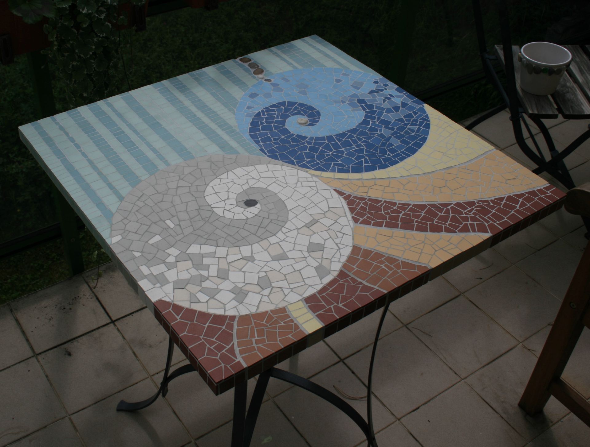Je réalise des objets en mosaïque tels que des tables, plateaux, cadres et objets décoratifs. Je travaille principalement à partir d'objets et de matériaux de récupération trouvés en divers lieux, notamment autour du lac Léman. Venez me rendre visite pour en voir plus!